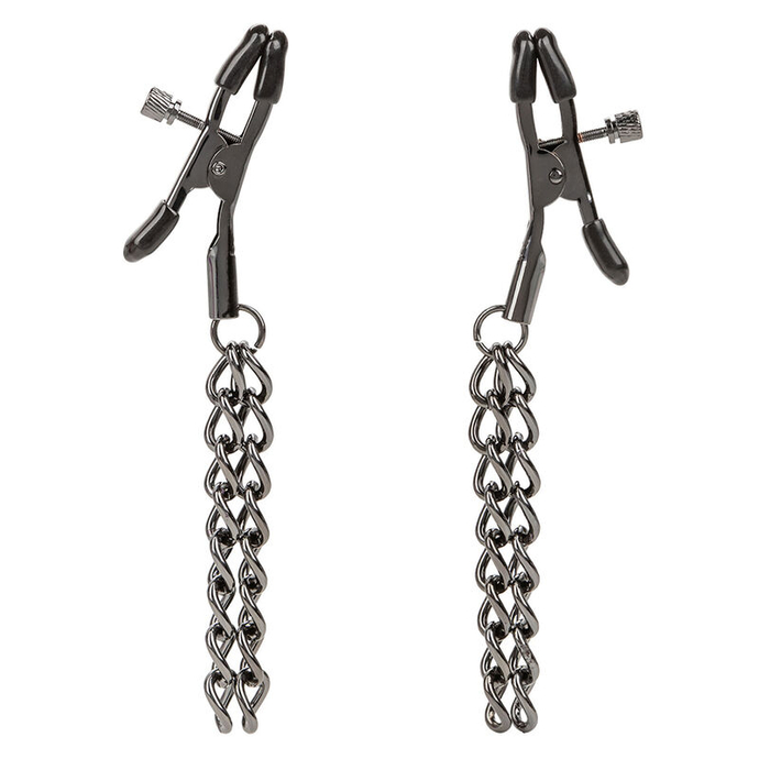 Soft pads provide a gentle embrace, expanding the realm of sensory play. Double chains fall gracefully from each clamp, amplifying sensations with every movement. Crafted with nickel-free metal accents, they ensure carefree seduction.