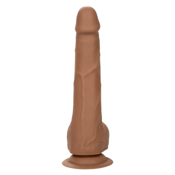 Youre all about the size of your pleasure and the CalExotics Silicone Studs 8 has arrived to deliver a pounding experience fit for any size queen. The real-feel dong is crafted with an ample 8-inch shaft, realistic flexible design, and suction cup base. Deliver the pleasure youve been craving with a 8-inch long dong with sensual tip, textured shaft, and life-like balls. The textured shaft has a firm, yet flexible feel sure to deliver a truly realistic penetration experience. The flanged base has a sturdy suction cup that can be used in a harness or mounted to a flat surface for sensational hands-free fun.
